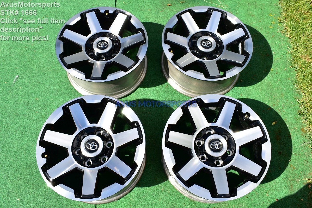 A toyota 4runner deserves the right parts to run at the highest efficiency. Aluminum toyota 4runner rims tend to be lighter than their steel counterparts, but not all aluminum wheels are the same. Where is everyone getting their trd pro rims for the 4runner? Our quality assurance team hand inspects all stock toyota 4runner rims to ensure they are all in like new condition upon arrival. Narrow down toyota 4runner tire sizes by selecting your toyota 4runner year. The tire size for your toyota 4runner depends upon the year of manufacturer. Brand new 4 runner 19 model shimmy at 58 mph dealer acts like its nothing tells me about tire balancing.been balanced 3 times no good.lawyer up and go! See more ideas about toyota 4runner trd, toyota 4runner, toyota trucks. We display the details needed for you to match your stock toyota 4 runner wheel and toyota 4 runner rim exactly to what you need. Does anyone know the difference between the fj and 4runner rims regarding the offset? Find great deals on ebay for toyota 4runners rims. Our comprehensive coverage delivers all you need to know to make an informed car buying decision. However, i have a set of 4runner rims on the fj, and was reading here that the offset is different, which can limit tire size.